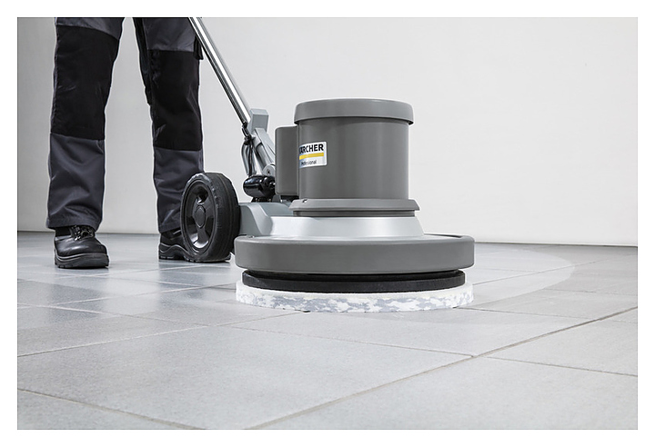 Однодисковая полировальная машина Karcher BDS 43/150 C Classic предназначена для профессионального ухода за различными типами твердых, эластичных и текстильных напольных покрытий в помещениях офисов, гостиниц, кинотеатров, торговых центров, предприятий общественного питания и других отраслей. Модель оснащена розеткой для подключения всасывающего модуля, удобной рукоятью и двухколесным шасси. Корпус изготовлен из ударопрочного пластика, рукоять – из металла и пластика. Особенности: