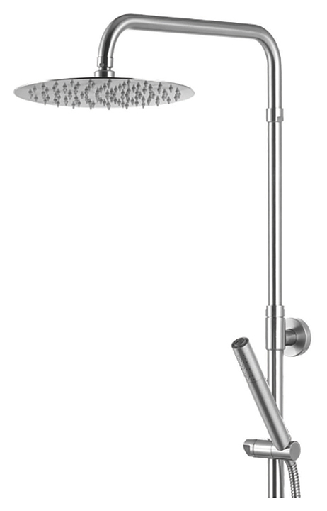 Душевая стойка Aquanet Steel V2 AF212-71S используется в ванных комнатах. Модель оснащена округлой лейкой и круглым верхним душем. Изделие выполнено из нержавеющей стали, которая отличается прочностью, долговечностью и устойчивостью к перепадам температур. Комплектация: