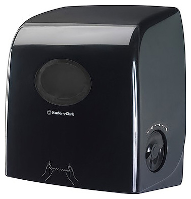 Диспенсер Kimerly-Clark Aquarius Slimroll 7185 предназначен для размещения и подачи рулонных бумажных полотенец в общественных санитарных узлах офисов, предприятий общепита, медицинских учреждений и других мест большой проходимости. Модель оснащена скрытым замком и окошком для контроля над наличием расходного материала. Корпус выполнен из ударопрочного ABS пластика черного цвета. Диспенсер подходит для использования с рулонными бумажными полотенцами Scott и Kleenex. Особенности: