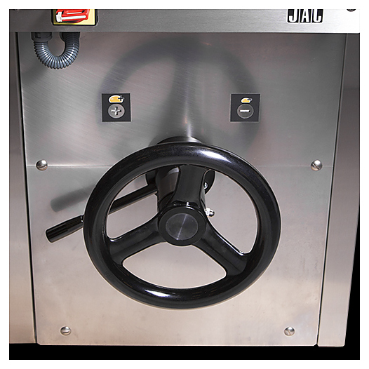 Объемный делитель под атмосферным давлением Jac PE50P 74 используется на предприятиях общественного питания и торговли для распределения всех видов теста. Модель оснащена автономным посыпателем муки и системой рециркуляции масла оснащенной патронным фильтром и сигнализацией низкого уровня, наполнение снаружи. Бункер изготовлен из тефлона, барабан и корпус - из нержавеющей стали, отводящая лента - из войлока, поршень - из литой стали. Особенности: