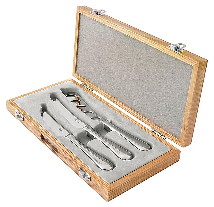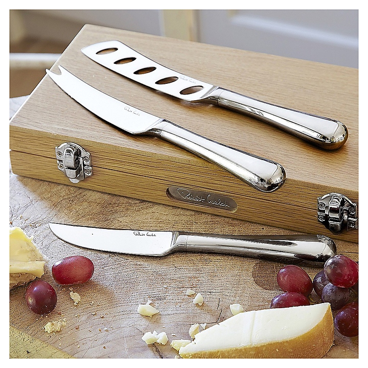 Набор кухонных ножей ROBERT WELCH Radford Bright предназначен для нарезки сыра на предприятиях общественного питания и торговли, а также в частных домах и квартирах. Изделия подходят для мытья в посудомоечной машине. Лезвия ножей изготовлены из специально закаленной нержавеющей стали 18/10 с зеркальной полировкой, чтобы режущая кромка была максимально тонкой. В комплект входят: нож для твердого сыра, универсальный сырный нож, нож для мягкого сыра. Особенности: