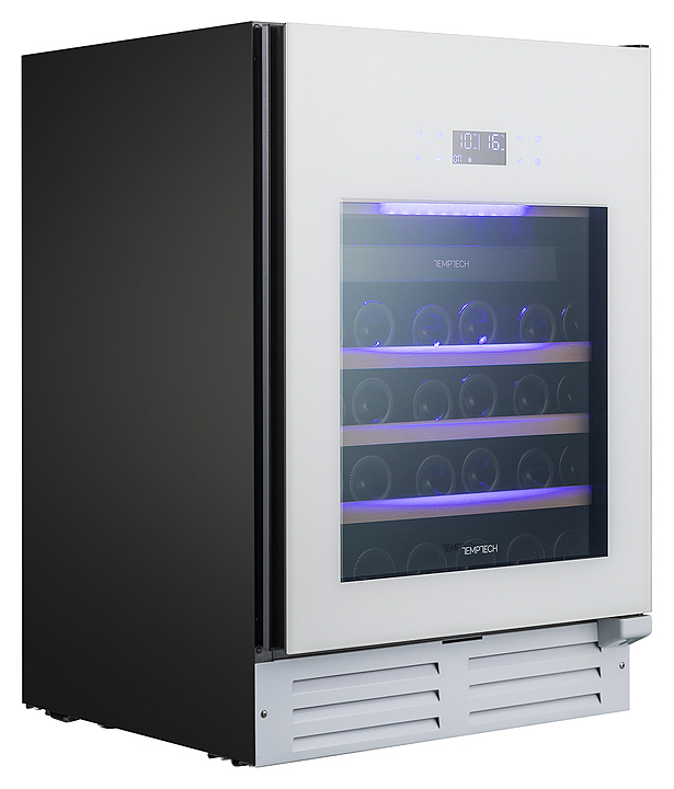 Винный шкаф Temptech Elegance EX60DRW предназначен для охлаждения, хранения и демонстрации бутилированного вина в отелях, винных магазинах, на предприятиях общественного питания и торговли. Модель оснащена сенсорной панелью с дисплеем для регулировки температуры и освещения, расположенной снаружи дверцы, 6 полностью выдвижными полками, дверцей со встроенной ручкой, фильтром с активированным углем и светодиодной подсветкой. Дверца выполнена из двухслойного стекла, заполненного аргоном и с защитой от УФ-лучей, передняя панель - из белого стекла, полки - из бука. Особенности: