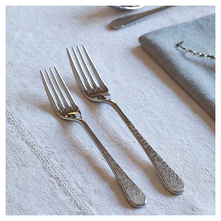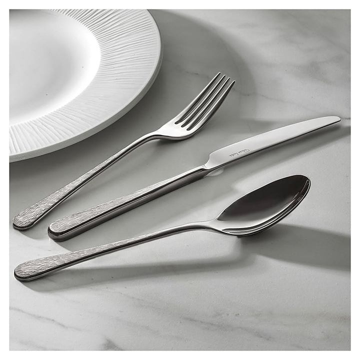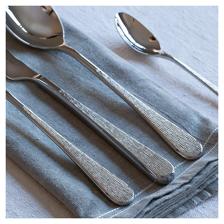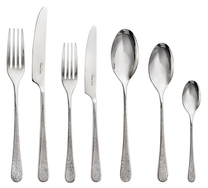 Набор столовых приборов ROBERT WELCH Skye используется на предприятиях общественного питания и торговли, а также в частных домах и квартирах. Изделия подходят для мытья в посудомоечной машине. Приборы изготовлены из специально закаленной нержавеющей стали 18/10 с зеркальной полировкой, чтобы режущая кромка была максимально тонкой, ручка с текстурированной отделкой, а рабочие поверхности гладкие для удобства использования. В комплект поставки входит 6 столовых ножей, 6 столовых вилок, 6 суповых ложек, 6 боковых ножей, 6 боковых вилок, 6 десертных ложек, 6 английских чайных ложек. Особенности: