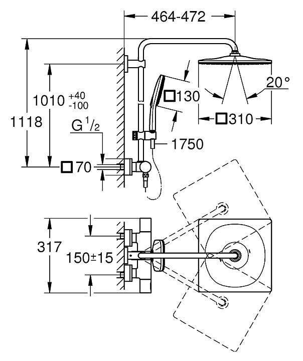 Душевая система с термостатом Grohe Rainshower SmartActive 310 26649000