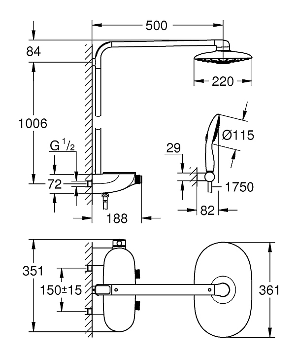 Душевая система с термостатом Grohe Rainshower SmartControl Duo 360 26250000