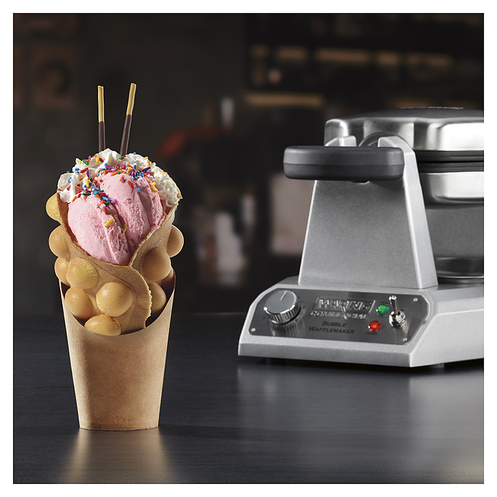 Вафельница Waring WBW300XCE используется на предприятиях общественного питания и торговли для выпекания гонконгских вафель. Рабочие поверхности покрыты тройным антипригарным покрытием для простого извлечения готовых вафель и легкой очистки пластин. Вмонтированные в пластины нагревательные элементы обеспечивают точный контроль температуры и равномерное распределение тепла. Особенности: