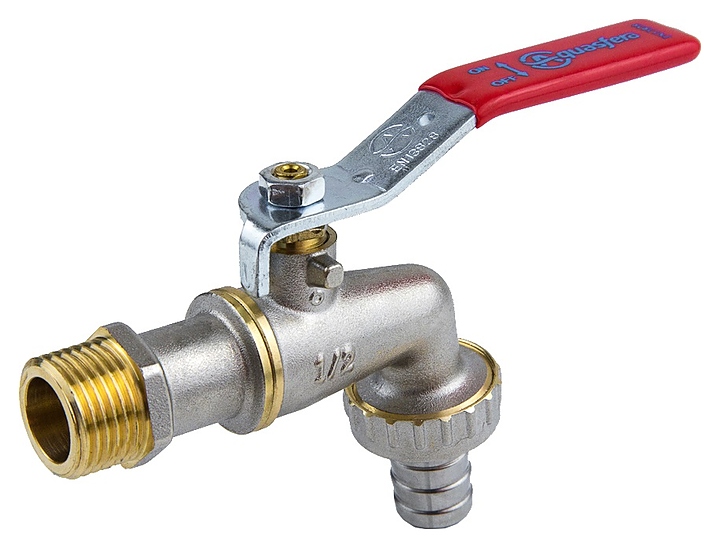 Кран шаровой водоразборный Aquasfera 007-7417, ДУ 15, PN 1,6 МПа, 1/2"НР - штуцер, 1019-01 латунный с рычагом