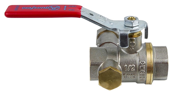 Полнопроходной шаровой кран Aquasfera 007-7413 используется в качестве запорной арматуры в системах пожаротушения, отопления, холодного и горячего водоснабжения в хозяйственно-питьевых сетях и промышленных технологических трубопроводах. Модель оснащена рычажной рукояткой с отверстием для пломбирования и спускником со штуцером для шланга. Корпус, шар, шток, гайка сальника, плунжер и заглушки выполнены из высококачественной горячепрессованной латуни (CW617N), рукоятка и гайка – из конструкционной стали (S235) с цинковым покрытием, уплотнение шара, сальника и антифрикционное – из политетрафторэтилена (PTFE), уплотнение штока и уплотнительные кольца – из этиленпропилендиен мономера (EPDM), корпус и заглушки с никелевым покрытием, шар с хромированным покрытием. Модель поставляется в собранном виде в положении полного открытия. Особенности: