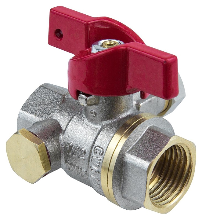 Кран шаровой со спускником Aquasfera 007-7416, ДУ 15, PN 4 МПа, 1/2"ВР - 1/2"ВР - штуцер, 1013-01 полнопроходной латунный с бабочкой