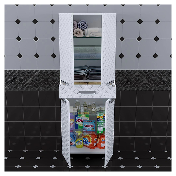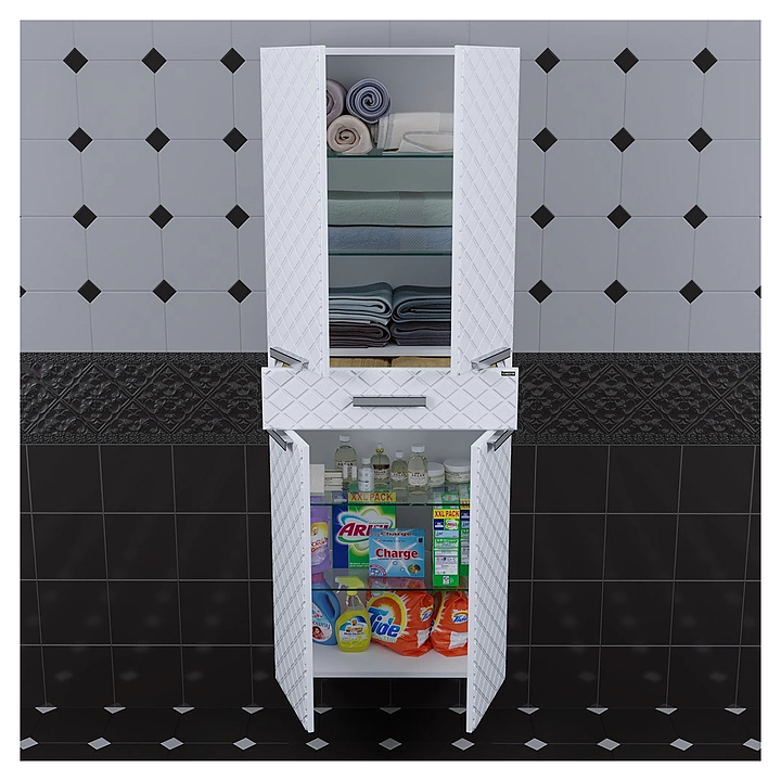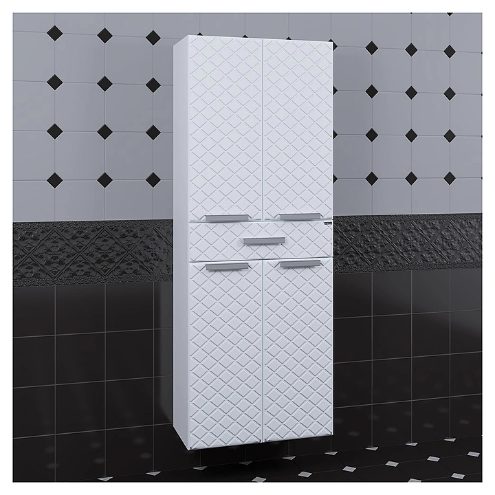 Шкаф-пенал СаНта Калипсо 60 дополнит интерьер ванной комнаты. Модель оборудована 4 распашными дверцами, 4 стеклянными полками, выдвижным ящиком и ножками, защищающими конструкцию от воздействия влаги в случае намокания пола, также возможен подвесной монтаж. Корпус выполнен из влагостойкой ЛДСП, фасад - из МДФ и покрыт ПВХ-пленкой для защиты от внешних воздействий. В комплект поставки входят 5 ручек, 4 стеклянные полки, 2 хромированные и 2 пластиковые ножки. Особенности: