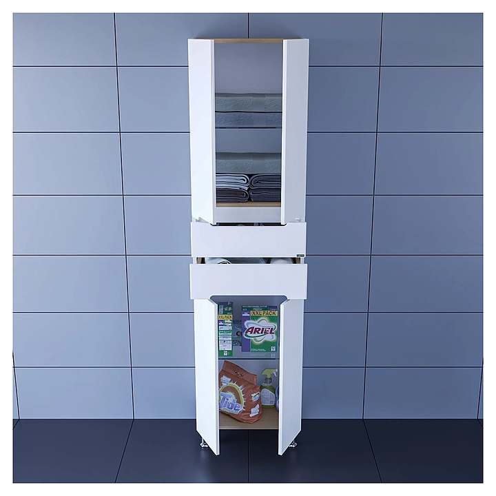 Шкаф-пенал СаНта Лондон 50 дополнит интерьер ванной комнаты. Модель оснащена 4 распашными дверцами, 2 стеклянными полками, 2 выдвижными ящиками и ножками, защищающими конструкцию от воздействия влаги в случае намокания пола. Корпус выполнен из влагостойкой ЛДСП, фасад - из МДФ и покрыт ПВХ-пленкой для защиты от внешних воздействий. В комплект поставки входят 2 хромированные и 2 пластиковые ножки. Особенности: