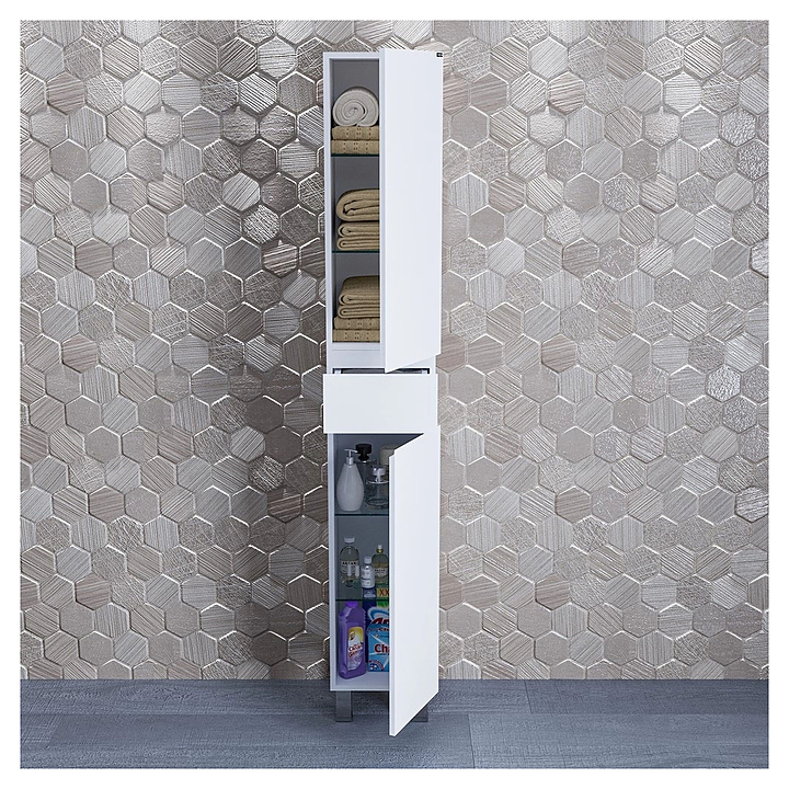 Шкаф-пенал СаНта Марс 30 дополнит интерьер ванной комнаты. Модель оснащена 2 распашными дверцами, 4 полками, выдвижным ящиком и ножками, защищающими конструкцию от воздействия влаги в случае намокания пола. Корпус выполнен из влагостойкой ЛДСП, фасад - из МДФ и покрыто эмалью для защиты от внешних воздействий. В комплект поставки входят 2 хромированные и 2 пластиковые ножки. Особенности: