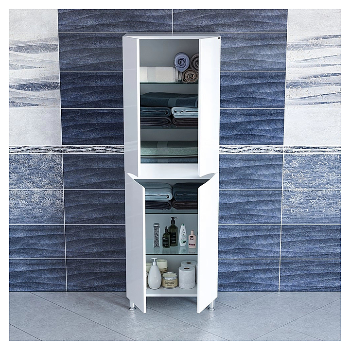 Шкаф-пенал СаНта Сатурн 60 дополнит интерьер ванной комнаты. Модель оснащена 4 распашными дверцами, 4 полками и ножками, защищающими конструкцию от воздействия влаги в случае намокания пола, также возможен подвесной монтаж. Корпус выполнен из влагостойкой ЛДСП, фасад - из МДФ и покрыт эмалью для защиты от внешних воздействий. В комплект поставки входят 4 стеклянные полки, 2 хромированные и 2 пластиковые ножки. Особенности: