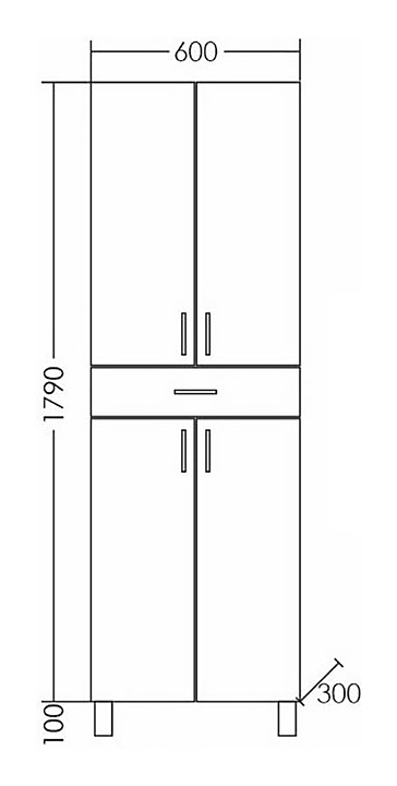 Шкаф-пенал СаНта Стандарт 60 дополнит интерьер ванной комнаты. Модель оснащена 4 распашными дверцами, 4 полками, выдвижным ящиком и ножками, защищающими конструкцию от воздействия влаги в случае намокания пола. Корпус выполнен из влагостойкой ЛДСП, фасад - из МДФ и покрыт ПВХ-пленкой для защиты от внешних воздействий. В комплект поставки входят 5 ручек и 4 ножки. Особенности: