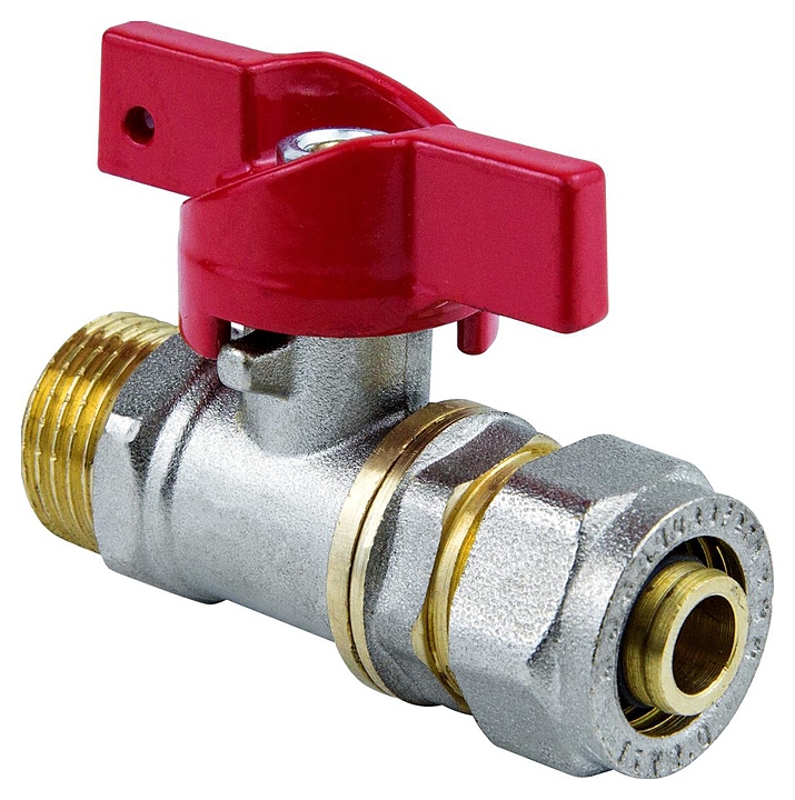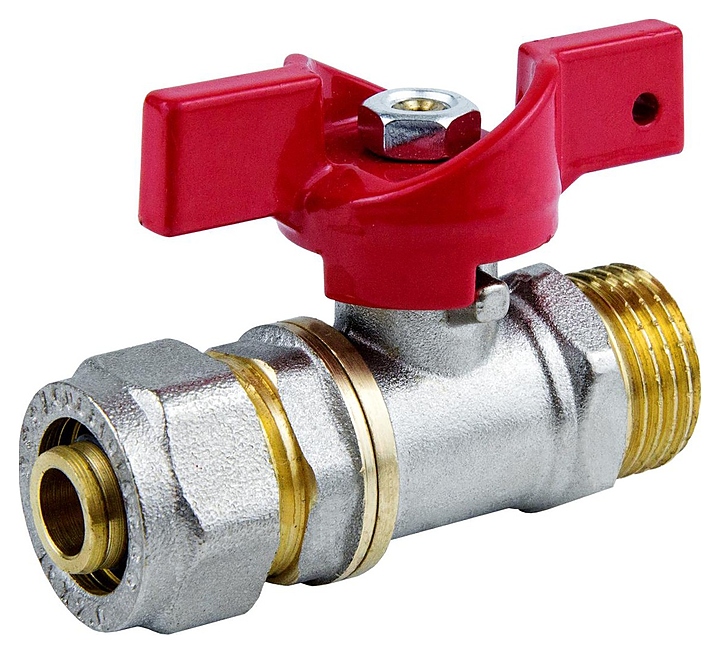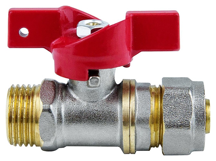 Кран шаровой Aquasfera 027-8783, PN 1,6 МПа, 1/2"НР - ДУ 20 обжим, 1017-02 EURO неполнопроходной латунный с бабочкой
