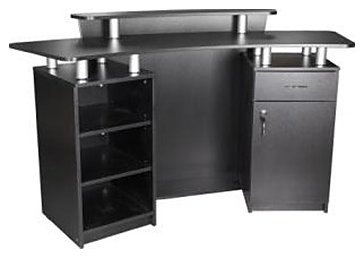 Стойка Имидж Мастер ВЕРОНА используется в холлах и залах ожидания парикмахерских, барбершопов, маникюрных студий, массажных кабинетов, салонов красоты и косметологических центров для комфортного взаимодействия администратора с клиентами. Модель оснащена 2 тумбами, широкой столешницей для работника с надстольной полкой для обмена информацией. Одна из тумб оборудована распашной дверцей и выдвижным ящиком, другая – открытым отделением с 3 полками. Корпус, полки и ящик выполнены из качественной ламинированной древесно-стружечной плиты с облицовкой влагостойкой пленкой, фронтальная панель – из пластика. Особенности: