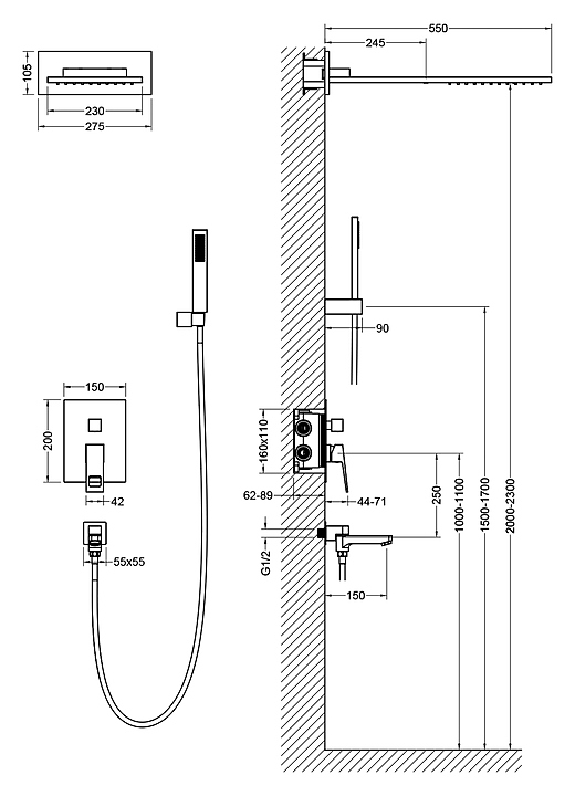 Комплект душевой TIMO Briana SX-7119/00SM с изливом, хром