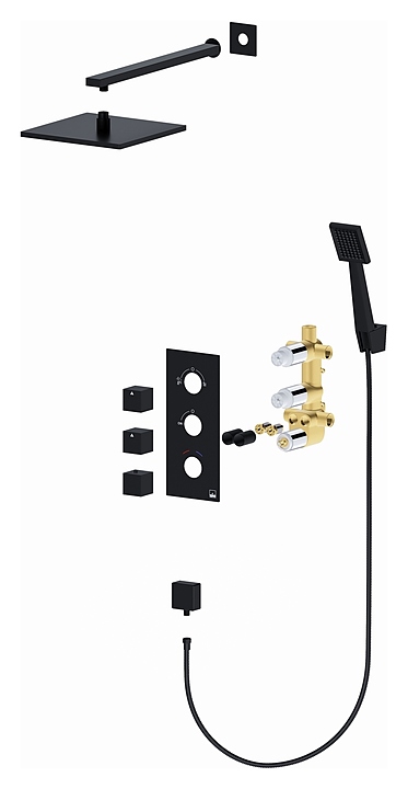 Комплект душевой TIMO Tetra-Thermo SX-0179/03SM с термостатом, черный матовый