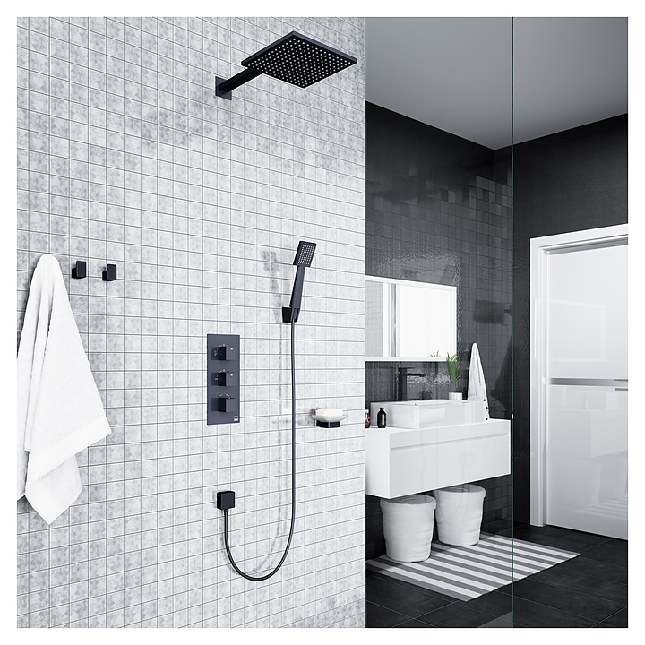 Душевой комплект TIMO Tetra-Thermo SX-0179/03SM предназначен для использования в ванных помещениях. Серия выполнена в стиле модерн. Модель оснащена квадратным верхним душем и ручной лейкой с душевым шлангом, а также термостатом, который автоматически прекращает подачу воды при отключении холодной воды, что предотвращает возникновение ожогов. Изделие выполнено из высококачественной латуни, отличающейся прочностью, долговечностью и устойчивостью к перепадам температур. В комплект поставки входят смеситель скрытого монтажа, держатель тропического душа с декоративным отражателем, тропический душ, ручная лейка, держатель ручной лейки, декоративная накладка смесителя, ручка дивертора, ручка регулировки напора воды, ручка термостата, душевой шланг и отвод из стены. Особенности: