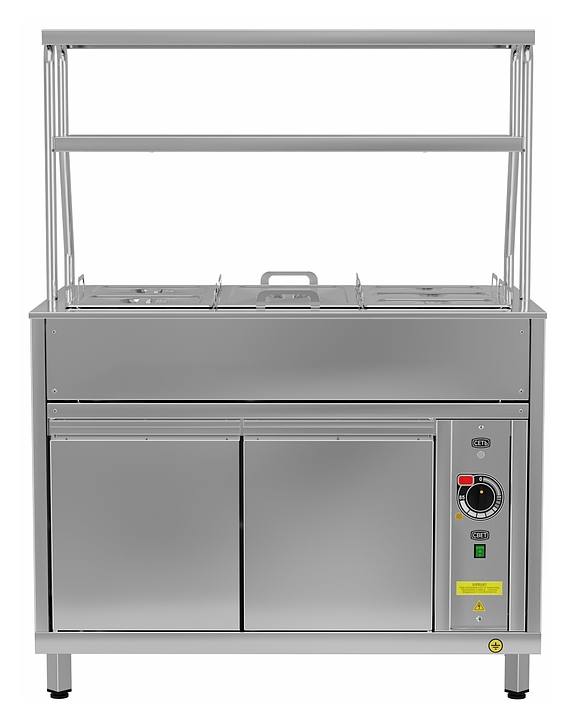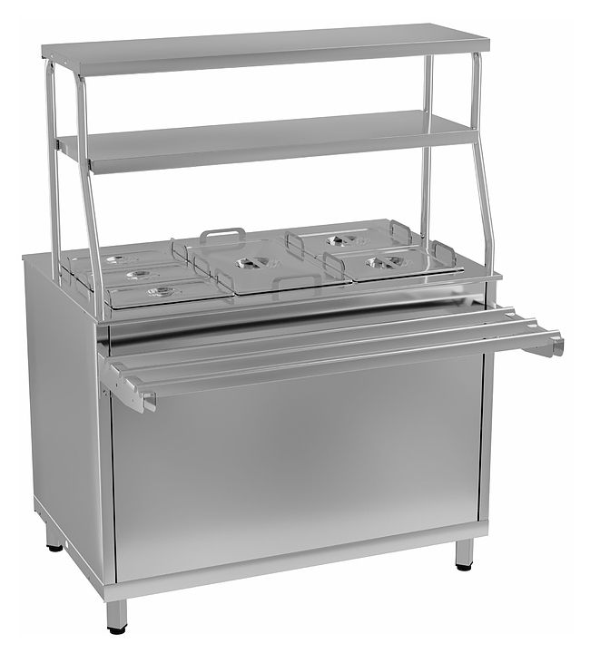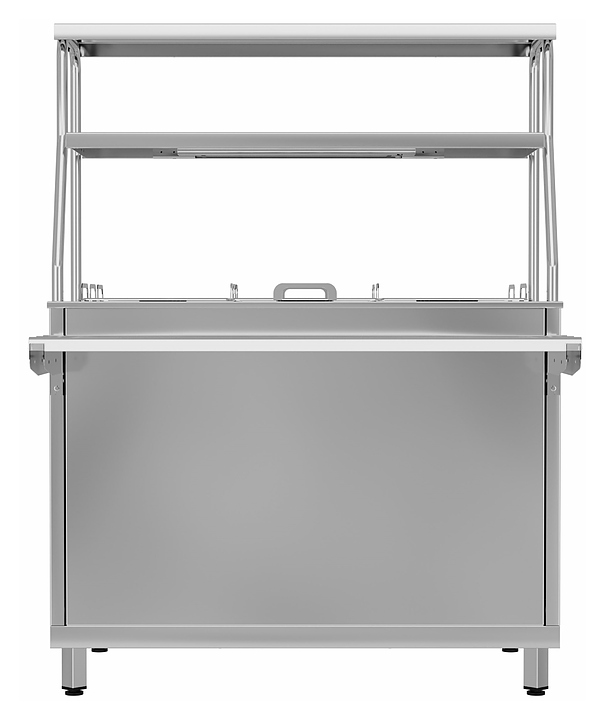 Мармит Gabino MM2V-10/7 используется в составе линии раздачи Gabino Riga для демонстрации и кратковременного хранения готовых блюд, продуктов питания, напитков и посуды на предприятиях общественного питания и торговли. Модель оснащена терморегулятором, 2-ярусной полкой с подсветкой, набором гастроёмкостей, нейтральным шкафом с распашными дверцами. Корпус выполнен из нержавеющей стали. Особенности:
