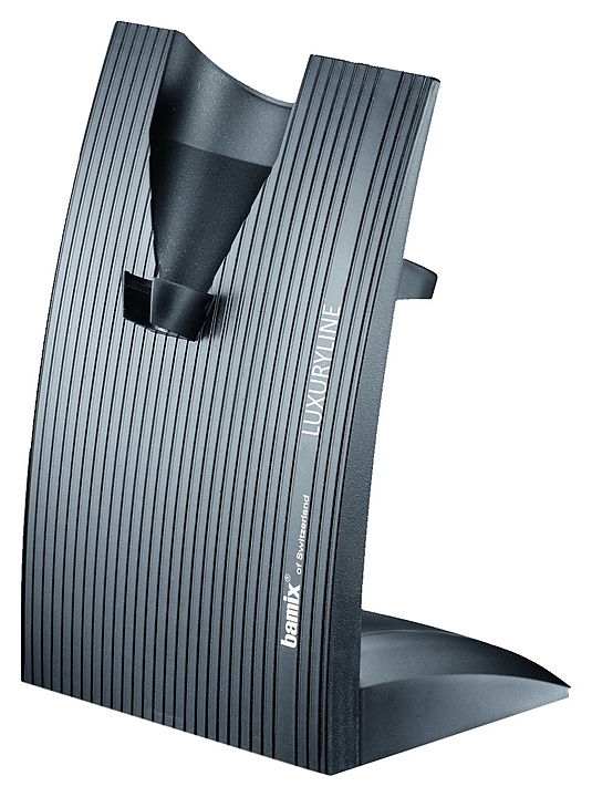 Блендер Bamix LuxuryLine M200 Carbon предназначен для взбивания жидкого теста, кремов и коктейлей, измельчения фруктов, овощей, орехов и трав и приготовления супов-пюре в частных домах и квартирах. Модель оснащена подставкой Swissline с отделами для хранения блендера, насадок и процессора. Корпус выполнен из нейлона, погружная часть - из оцинкованной латуни, емкости - из ударопрочного и термостойкого титана, насадки - из нержавеющей стали. Комплектация:
