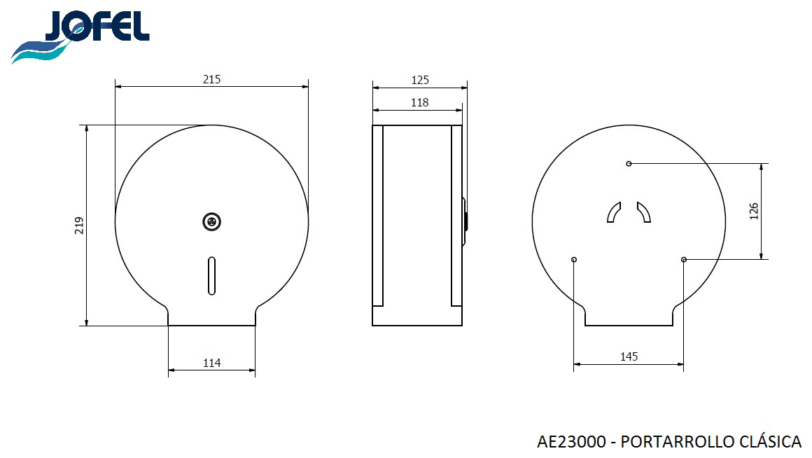 Диспенсер Jofel AE23000 серии Clasica используется в туалетных комнатах кафе, баров, ресторанов, торговых центров и офисов для гигиеничного размещения и дозированной подачи туалетной бумаги. Модель оснащена смотровым окном для контроля расхода. Корпус выполнен из сатинированной нержавеющей стали AISI 304 толщиной 0,8 мм, замок - из хромированного сплава Zamak, внутренний вал - из белого ABS-пластика. В комплект поставки входят черный ключ с 3 выступами, 3 дюбеля и 3 винта для крепления на стену. Особенности:
