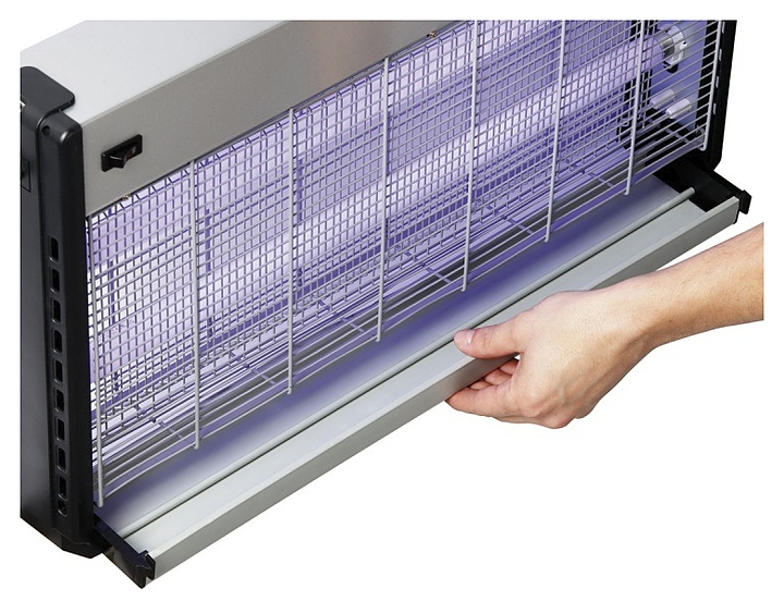 Инсектицидная лампа Bartscher IV-65 300317 предназначена для привлечения ультрафиолетовым излучением и уничтожения электрическим током комаров, мух, мотыльков и прочих летающих вредителей посредством находящихся под высоким напряжением металлических решеток в залах кафе, ресторанов и на других предприятиях общественного питания. Корпус выполнен из пластика. В комплект поставки входит цепь для подвешивания. Характеристики: