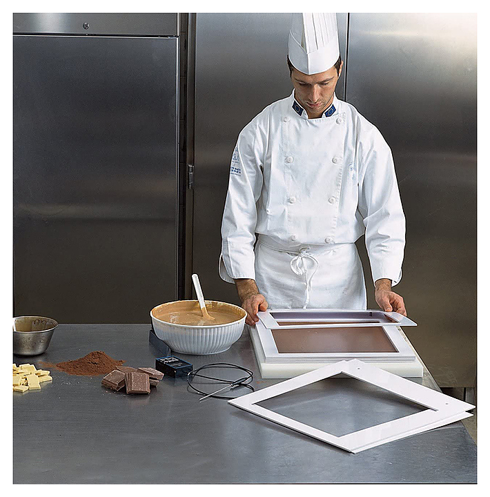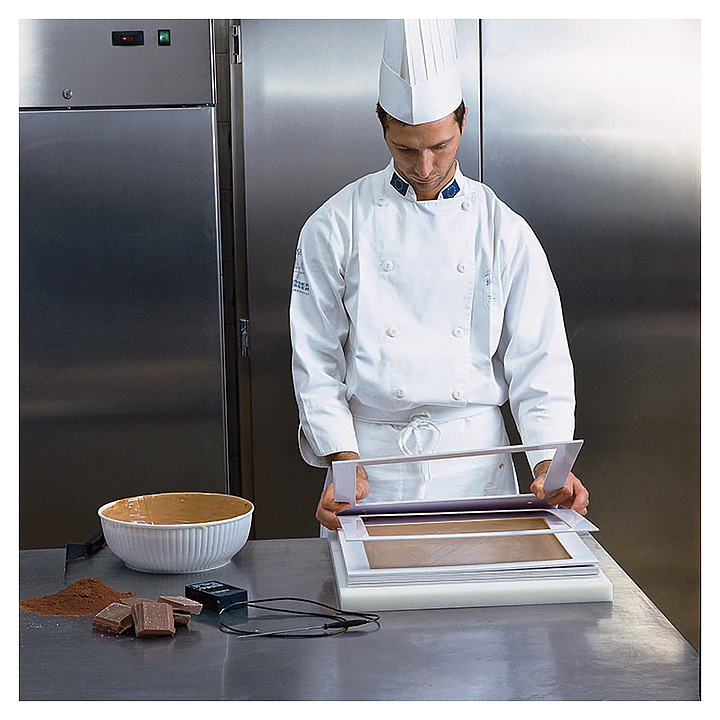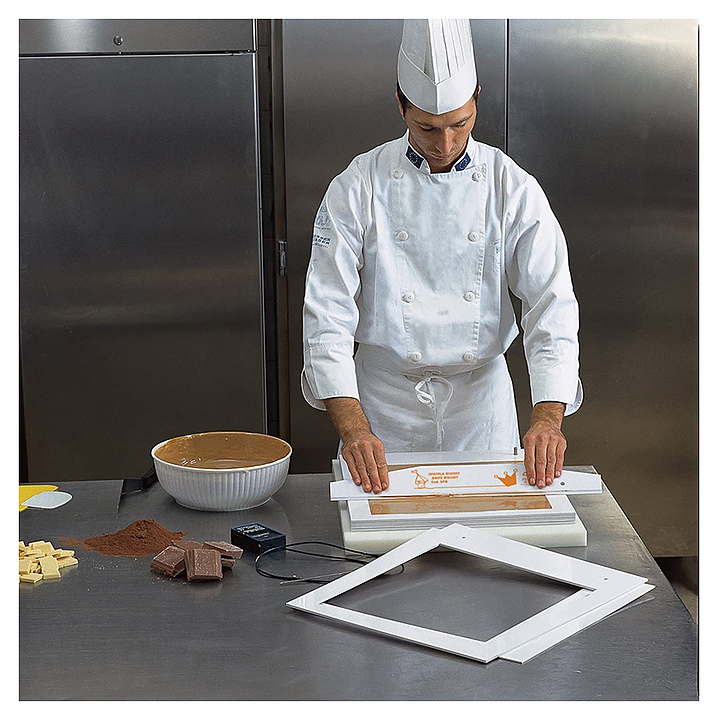 Набор Martellato TL SPECIAL предназначен для формирования многослойного шоколада кремино, мармелада и ганаша на предприятиях общественного питания и торговли, в частных домах и квартирах. Набор инструментов сделает процесс приготовления десертов быстрым и легким. В комплект поставки входят полиэтиленовая основа, 2 рамки для формирования слоя высотой 3 мм, 2 рамки для формирования слоя высотой 5 мм пластиковый шпатель. Характеристики: