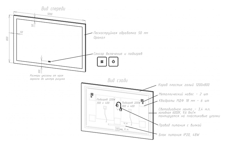 Зеркало Art&Max Soli AM-Sol-1200-800-DS-F-H 120x80 см, с подсветкой и функцией антизапотевания