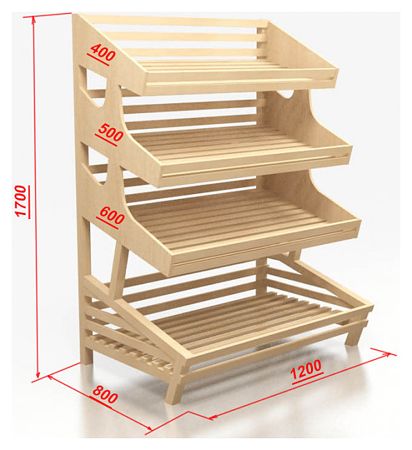 Стеллаж для хлеба торцевой прямой Евромаркет В008 L=1200, H=1700, G=800 с тремя полками