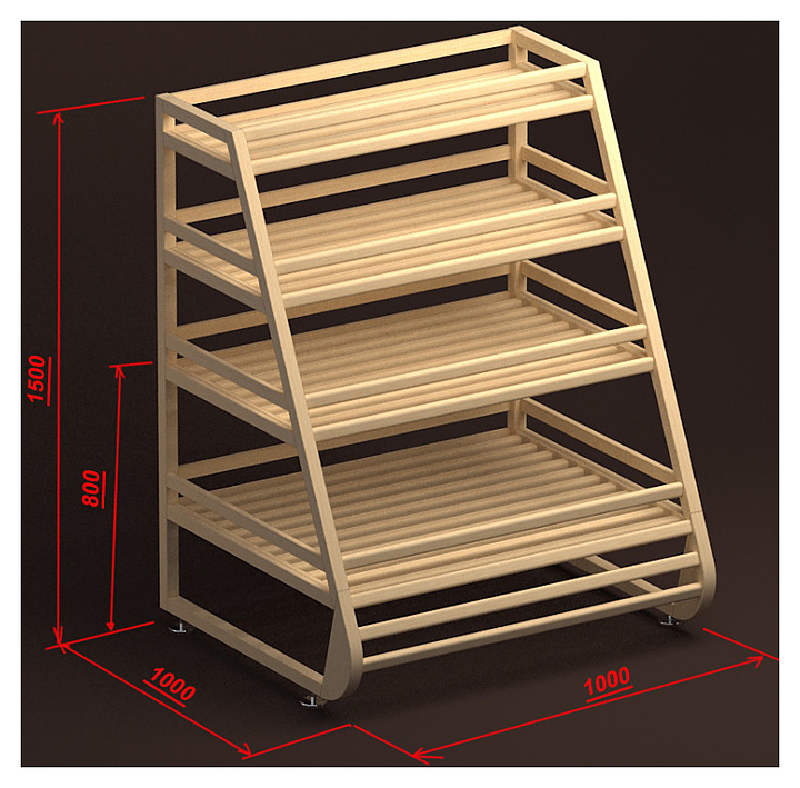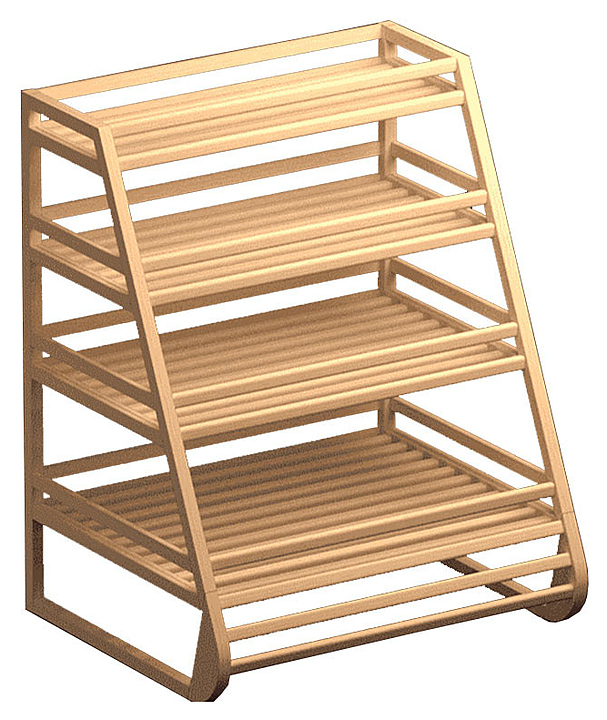 Стеллаж Евромаркет В010 L=1200, H=1500, G=1000 используется в продуктовых магазинах, супермаркетах, гипермаркетах и в других торговых помещениях для выкладки хлеба и багетов. Модель оснащена 4 полками. Изделие выполнено из массива дерева. Дополнительные характеристики: