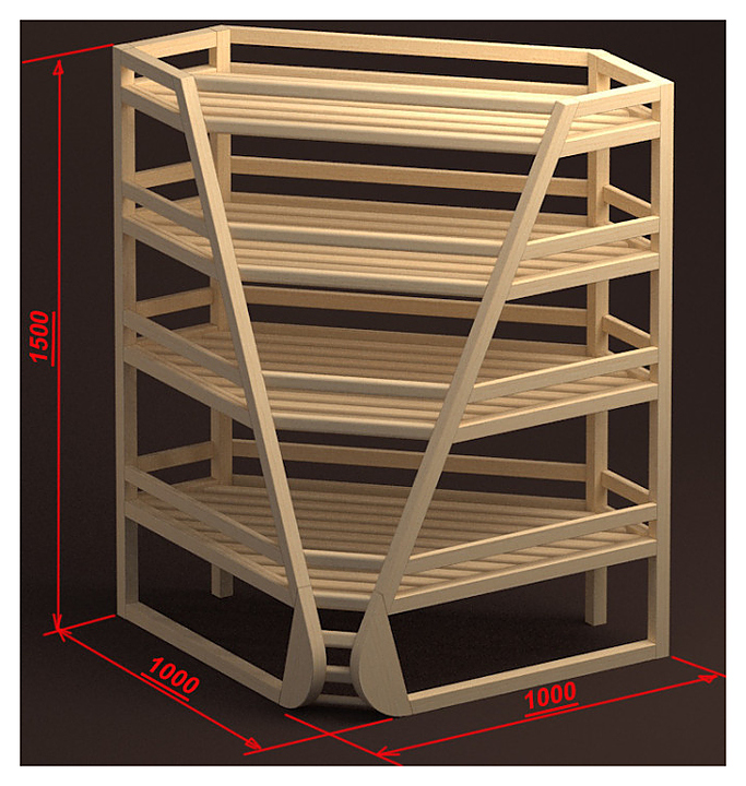 Угловой внутренний стеллаж Евромаркет В015 L=1000, H=1500, G=1000 используется в продуктовых магазинах, супермаркетах, гипермаркетах и в других торговых помещениях для выкладки багетов. Модель оснащена 4 полками. Изделие выполнено из массива дерева.
