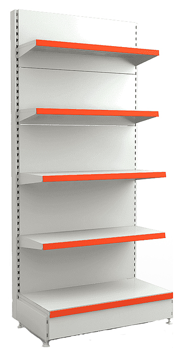Пристенный стеллаж Евромаркет L=1000, H=2250, G=500 используется в продуктовых магазинах, супермаркетах, гипермаркетах и в других торговых помещениях для выкладки товаров. Модель оснащена 5 полками и сплошной стенкой. Ценникодержатели, ограничители и цоколь в комплект поставки не входят и приобретаются отдельно. Для завершения линии стеллажей необходима дополнительная односторонняя стойка. Особенности: