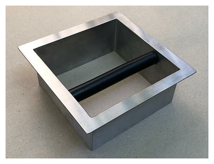 Нок-бокс Rinser используется совместно с кофемашинами на предприятиях общественного питания, в офисах и частных домах для сбора отработанного кофе из портафильтра после приготовления напитка. Модель подходит для мытья в посудомоечных машинах. Аксессуар оснащен съемной перекладиной, смещенной от центра. Изделие выполнено из нержавеющей стали AISI 201 толщиной 1,5 мм, перекладина - из прочной нержавеющей трубки и съемного резинового демпфера. Дополнительные характеристики: