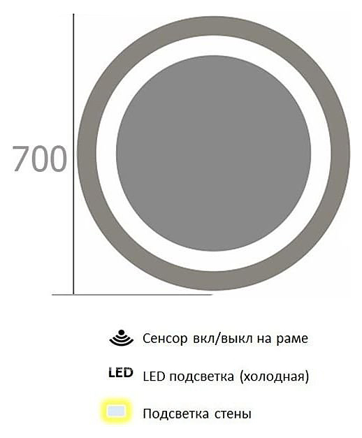 Зеркало De Aqua Мун 7070 70 см с LED подсветкой