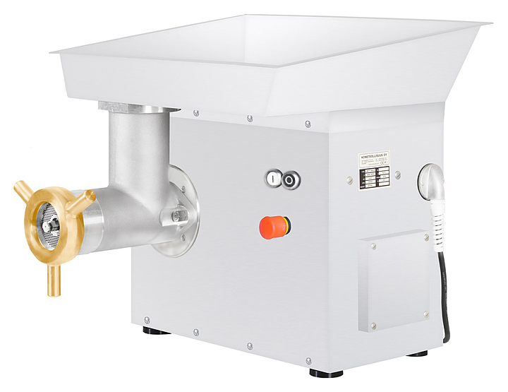 Мясорубка Koneteollisuus Oy (KT) LM-98/P предназначена для измельчения мяса и рыбы на фарш, повторного измельчения котлетной массы и набивки колбас на предприятиях пищевой промышленности и торговли. Модель оснащена съемной системой самозатачивающихся ножей, педалью с ключом безопасности и 4 резиновыми ножками. Корпус и лоток для мяса выполнены из нержавеющей стали, мясорубочная система - из пищевого алюминия, решетки - из нержавеющей стали, ножи - из прочной хромванадиевой стали 58CrV4. В комплект поставки входят 2 двусторонних ножа, подрезная решетка, 2 решетки с отверстиями диаметром 3 и 13 мм. Особенности: