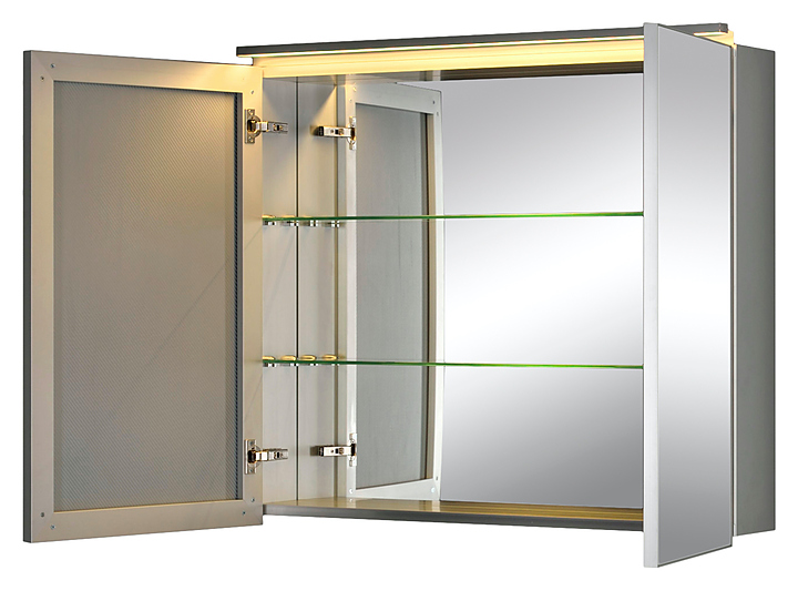 Зеркальный шкаф De Aqua Алюминиум 80 выполнен в стиле модерн и прекрасно впишется в интерьер любой ванной комнаты. Благодаря подвесной конструкции модель не занимает много места, что позволяет экономить пространство, а также облегчает уборку. Модель оснащена светодиодной подсветкой, 2 распашными зеркальными дверцами, 2 стеклянными полками и зеркалами внутри и снаружи. Корпус изделия выполен из анодированного алюминиевого профиля, который не царапается, не темнеет, не подвержен коррозии и не окисляется. Зеркала изготавливаются из японского зеркального полотна. Комплектация: