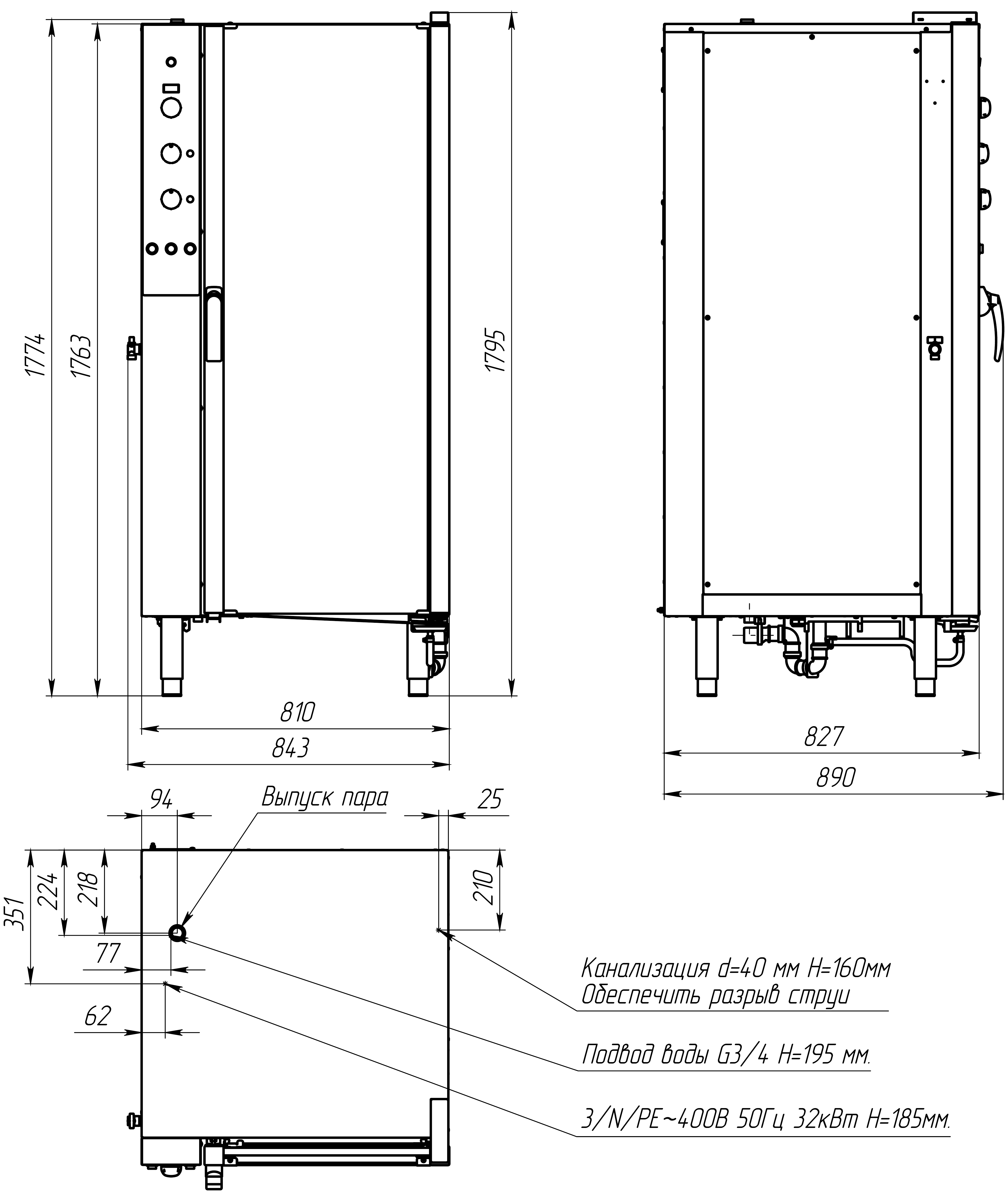 Пароконвектомат используется совместно с вытяжным зонтом ЗВП-С-10-1.1-03