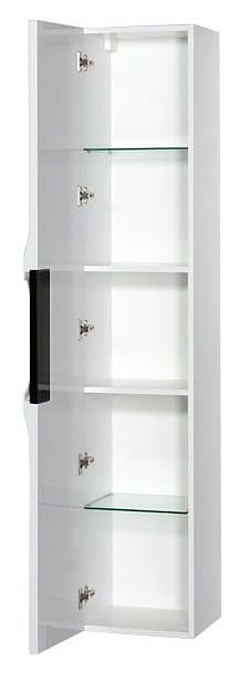 Шкаф-пенал De Aqua Виктория 35 L выполнен в стиле модерн и украсит интерьер любой ванной комнаты. Благодаря подвесной конструкции модель не занимает много места, что позволяет экономить пространство, а также облегчает уборку. Модель оснащена распашной дверцей с доводчиками, 2 стеклянными и 2 деревянными полками. Изделие выполнено из МДФ с глянцевым покрытием. Особенности:
