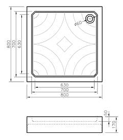Душевой поддон KollerPool Grace GRACE80S 80х80 см, квадрат, акрил