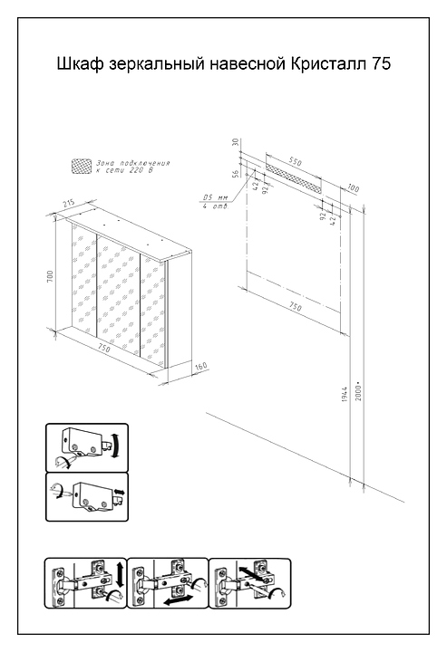 Зеркальный шкаф БРИКЛАЕР Кристалл 75 выполнен в современном стиле и отлично дополнит интерьер любой ванной комнаты. Модель оснащена 3 закрытыми шкафчиками с распашными дверцами с отделениями внутри для хранения ванных принадлежностей, а также врезным LED-светильником с выключателем на проводе. Благодаря подвесной конструкции модель не занимает много места, что позволяет экономить пространство в небольшой ванной комнате. Фасад и корпус мебели выполнен из ЛДСП покрытой лаком, отличающейся влагостойкостью, прочностью, устойчивостью к перепадам температурных режимов, способностью сохранять цвет и форму изделия в первозданном виде длительный срок. Особенности: