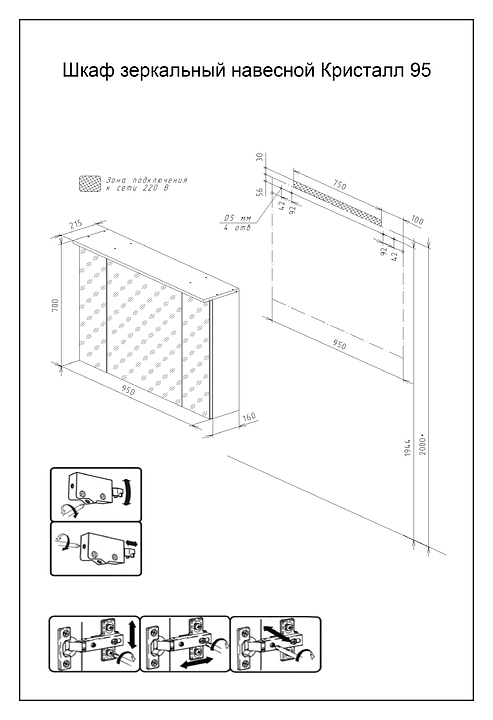 Зеркальный шкаф БРИКЛАЕР Кристалл 95 выполнен в современном стиле и отлично дополнит интерьер любой ванной комнаты. Модель оснащена 3 закрытыми шкафчиками с распашными дверцами и 6 стелянными полочками внутри для хранения ванных принадлежностей, а также врезным LED-светильником с выключателем на проводе. Благодаря подвесной конструкции модель не занимает много места, что позволяет экономить пространство в небольшой ванной комнате. Фасад и корпус мебели выполнен из ЛДСП покрытой лаком, отличающейся влагостойкостью, прочностью, устойчивостью к перепадам температурных режимов, способностью сохранять цвет и форму изделия в первозданном виде длительный срок. Особенности: