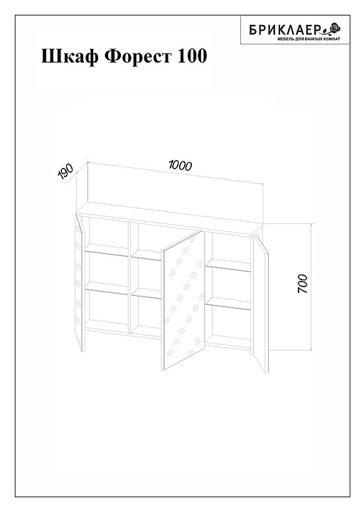 Зеркальный шкаф БРИКЛАЕР Форест 100 выполнен в современном стиле и отлично дополнит интерьер любой ванной комнаты. Модель оснащена закрытым шкафчиком с 3 распашными дверцами и 6 стеклянными полками внутри для хранения ванных принадлежностей, а также козыркьком с подсветкой. Благодаря подвесной конструкции модель не занимает много места, что позволяет экономить пространство в небольшой ванной комнате. Корпус мебели выполнен из ЛДСП, отличающейся влагостойкостью, прочностью, устойчивостью к перепадам температурных режимов, способностью сохранять цвет и форму изделия в первозданном виде длительный срок. Зеркальное полотно покрыто серебром с амальгамой. В комплект поставки входят навески для крепления к стене и петли с доводчиками. Особенности: