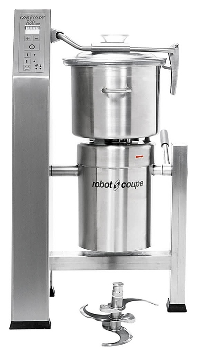 Куттер Robot Coupe R30 используется на предприятиях общественного питания и торговли для измельчения, смешивания и взбивания различных продуктов, приготовления фаршей, кремов, паштетов, соусов и муссов за самое короткое время, обеспечивая высокое качество конечного продукта. В комплект поставки входят чаша 23 л из нержавеющей стали и нож полностью из нержавеющей стали с 3 съёмными и регулируемыми гладкими лезвиями и 3 съёмными колёсика для лёгкого передвижения аппарата. Особенности: