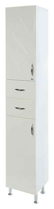 Шкаф-пенал Bellezza Элеганс 35 дополнит интерьер ванной комнаты. Изделие оснащено 2 ящиками, 2 дверцами, бельевой корзиной и ножками, защищающими конструкцию от воздействия влаги в случае намокания пола. Корпус выполнен из ЛДСП, фасад - из МДФ. Изделие покрыто глянцевой эмалью, которая отличается устойчивостью к повышенной влажности и простотой в уходе. В комплект поставки входят доводчики и бельевая корзина. Дополнительные характеристики: