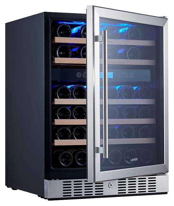 Встраиваемый винный шкаф Libhof Connoisseur CTD-46 Silver предназначен для хранения при оптимальных условиях бутилированного вина различных сортов в барах, ресторанах, специализированных магазинах, подсобных складских помещениях, а также в домашних условиях. Модель оснащена холодильной камерой с 2 температурными зонами, 5 съемными полками, распашной дверью с внутренними петлями, длинной рукояткой и прозрачным дымчатым обзорным стеклом с защитным напылением от ультрафиолетовых лучей. Корпус выполнен из металла, полки – из массива буковой древесины. Особенности: