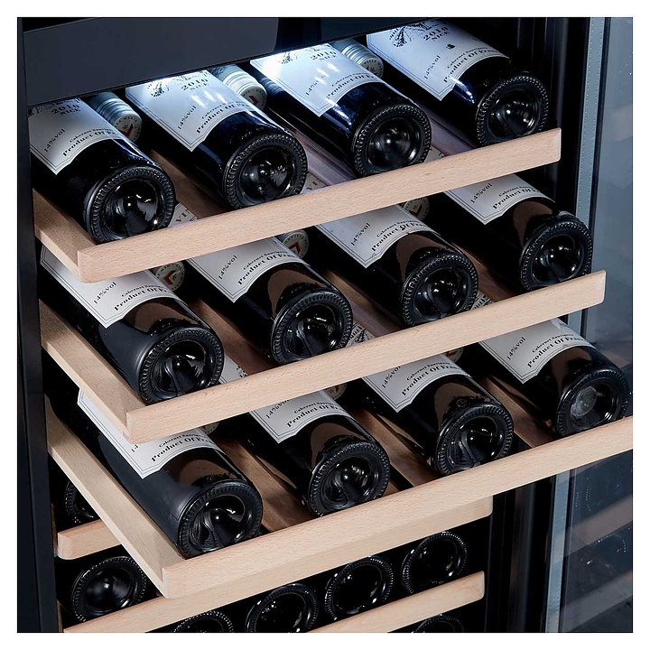 Винный шкаф Libhof GPD-73 Premium предназначен для хранения при оптимальных условиях бутилированного вина различных сортов в барах, ресторанах, специализированных магазинах, подсобных складских помещениях, а также в домашних условиях. Модель оснащена холодильной камерой с 2 температурными зонами, 11 съемными полками, распашной дверью с внутренними петлями, интегрированной в боковину рукояткой и прозрачным дымчатым обзорным стеклом с защитным напылением от ультрафиолетовых лучей. Корпус выполнен из металла, полки – из массива буковой древесины. Особенности: