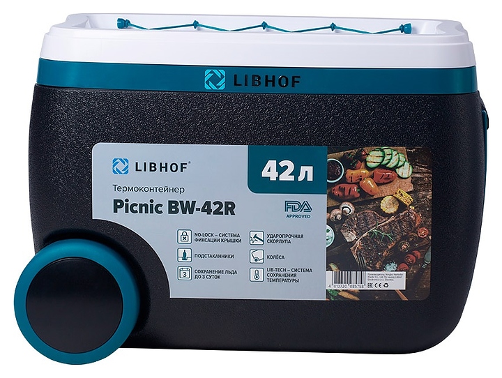 Термоконтейнер Libhof Picnic BW-42R предназначен для хранения и транспортировки приготовленных блюд, напитков, льда, свежих фруктов и других пищевых продуктов в автономных изотермических условиях во время небольших путешествий. Модель оснащена вместительной камерой, крышкой, 2 колесами и рукояткой. Ударопрочная скорлупа, внутренняя емкость и крышка выполнены из высококачественных термостойких пластмасс (PP и PE), теплоизоляция – вспененный полистирол (EPS). Особенности:
