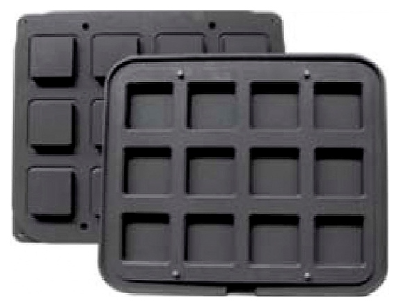 Форма PAVONI COOKMATIC UM используется совместно с тарталетницами NEWCOOKMATIC и NEWCOOKMATIC SPECIAL в пекарнях и кондитерских, на предприятиях пищевой промышленности и общественного питания. Модель состоит из 2 пластин и позволяет выпекать тарталетки квадратной формы с ровным краем. Пластины выполнены из алюминия, контактирующие с продуктами элементы имеют антипригарное покрытие. Характеристики: