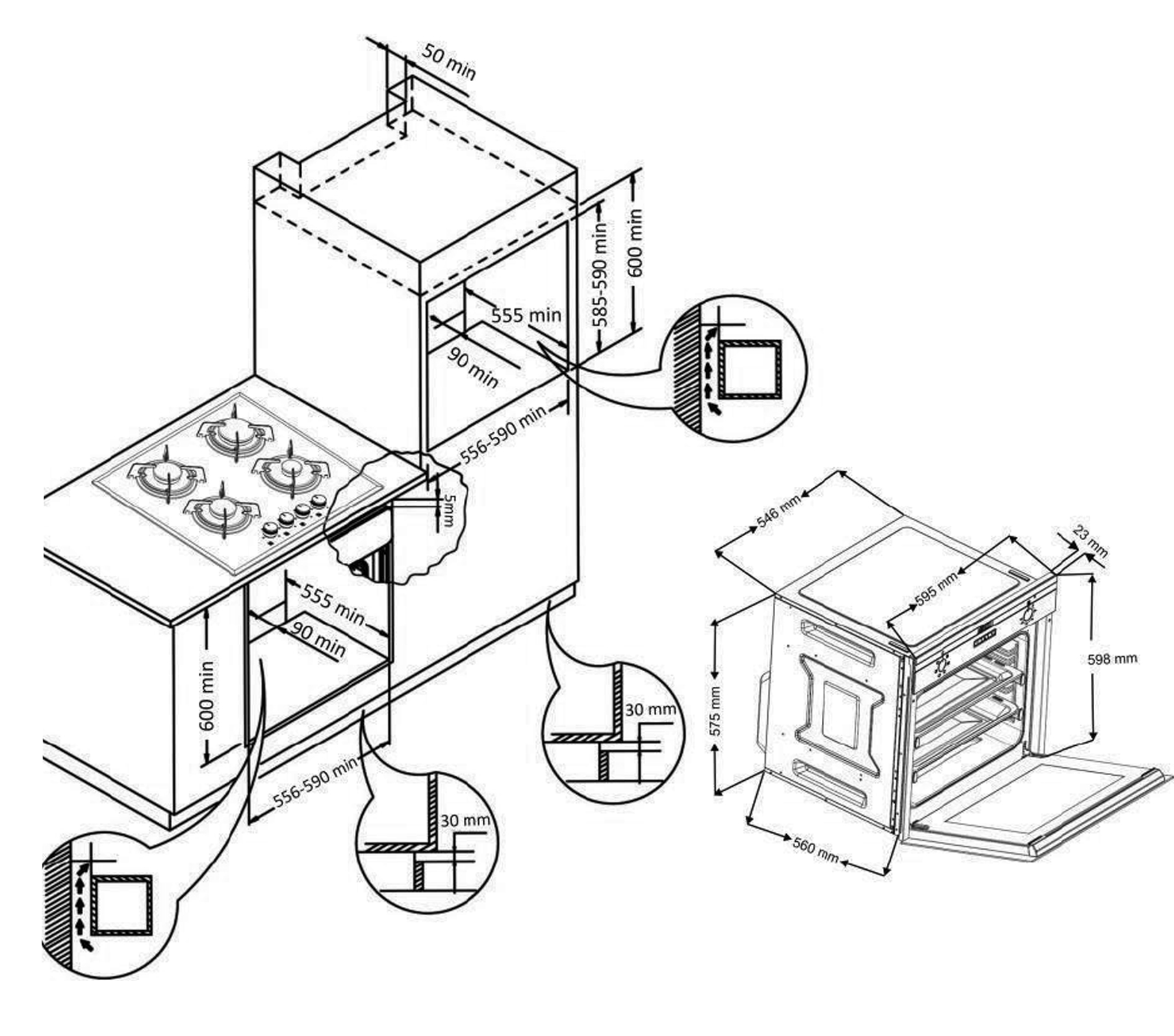 - Турбо (интенсивный обдув) для равномерного распределения тепла и одновременного приготовления блюд на нескольких уровнях без смешивания запахов